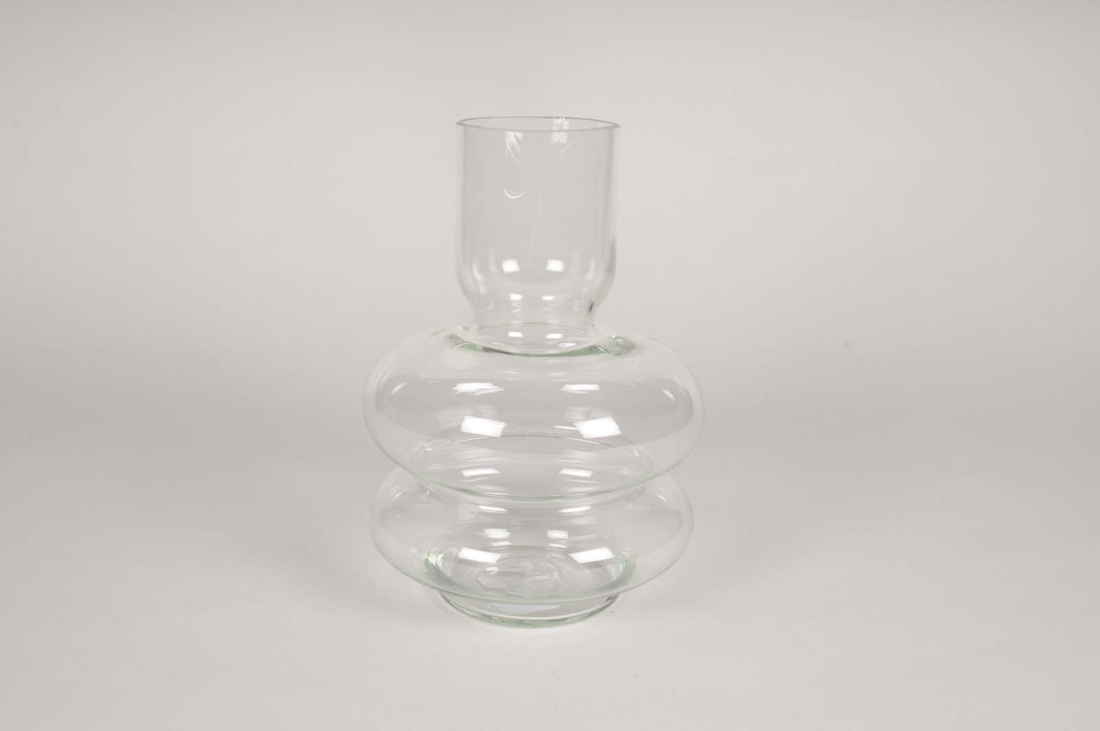 Clear glass vase diameter 18cm height 24.5cmOpening diameter 7cmBase diameter 10cm