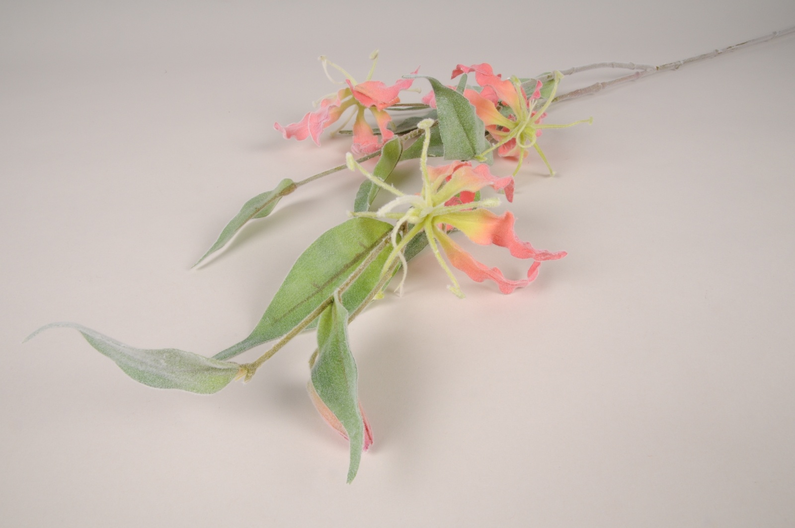 Branche de lys glorieux ou gloriosa artificiel rose effet velours hauteur 100cm