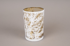Ref. : P5-000015 Gold with white trees motif glass light holder diameter 12cm height 18cm
