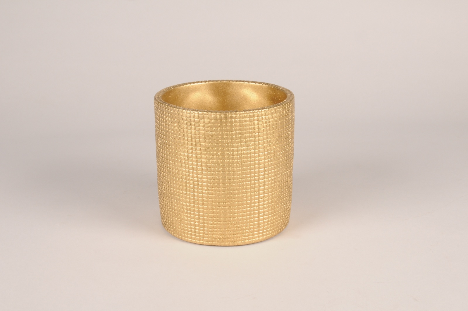 Gold ceramic planter with square pattern diameter 14cm height 13.5cmInside diameter 11.5cm