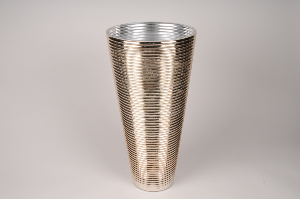 Gold glass vase with striated pattern diameter 19cm hauteur 40cm