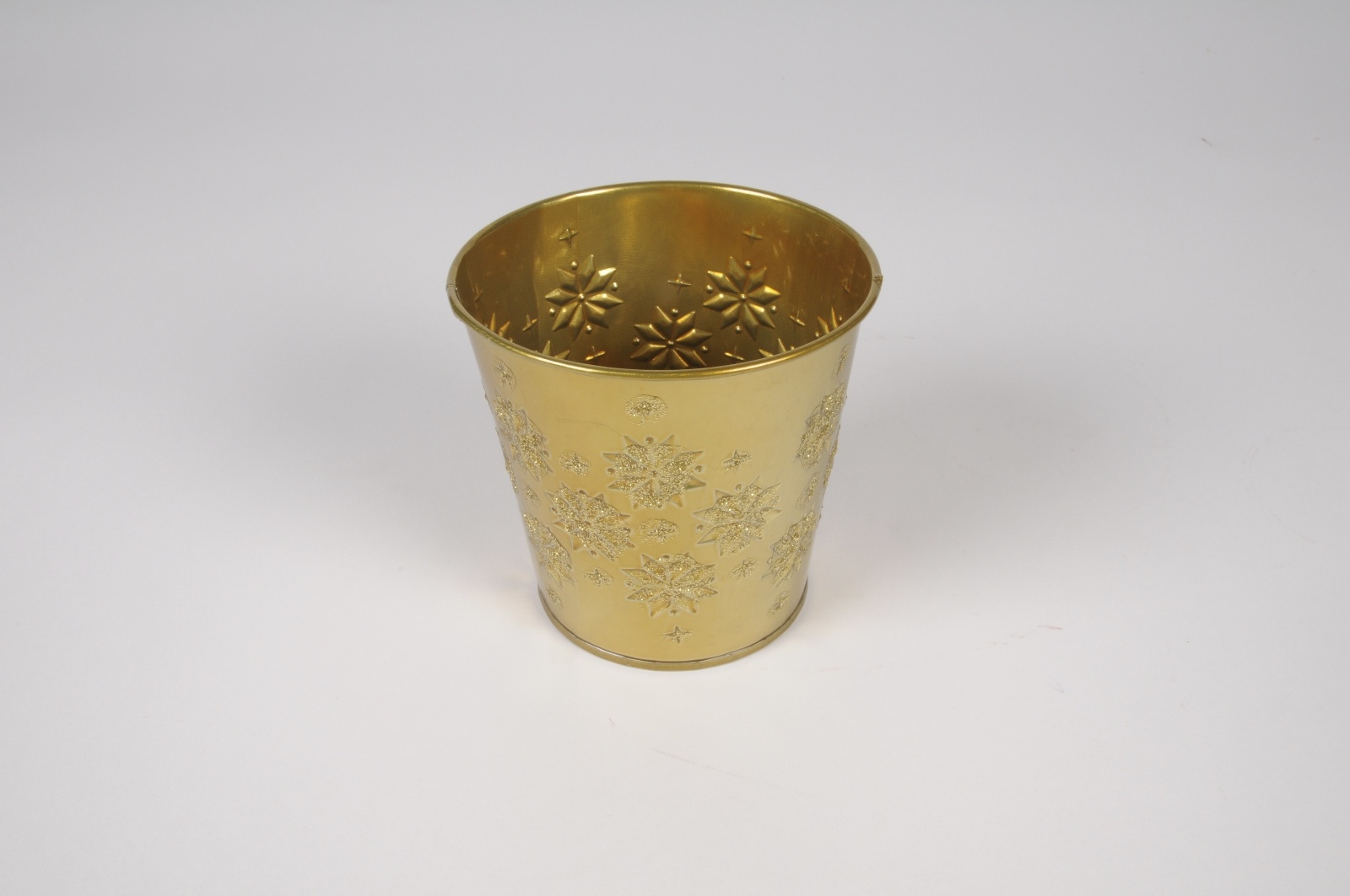 Gold zinc planter with snowflakes patterns diameter 11cm height 10.5cmBase diameter 8cm