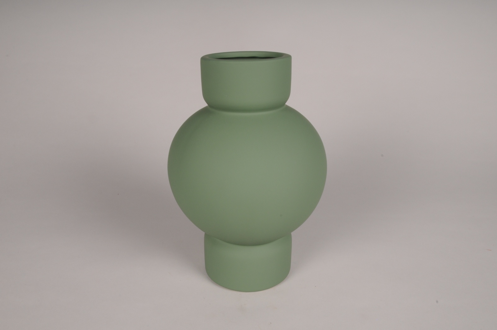 Green matt design ceramic vase a with geometric shape and smooth surface Diameter 17cm height 25cmOpening diameter 7.5cmBase diameter 10cm
