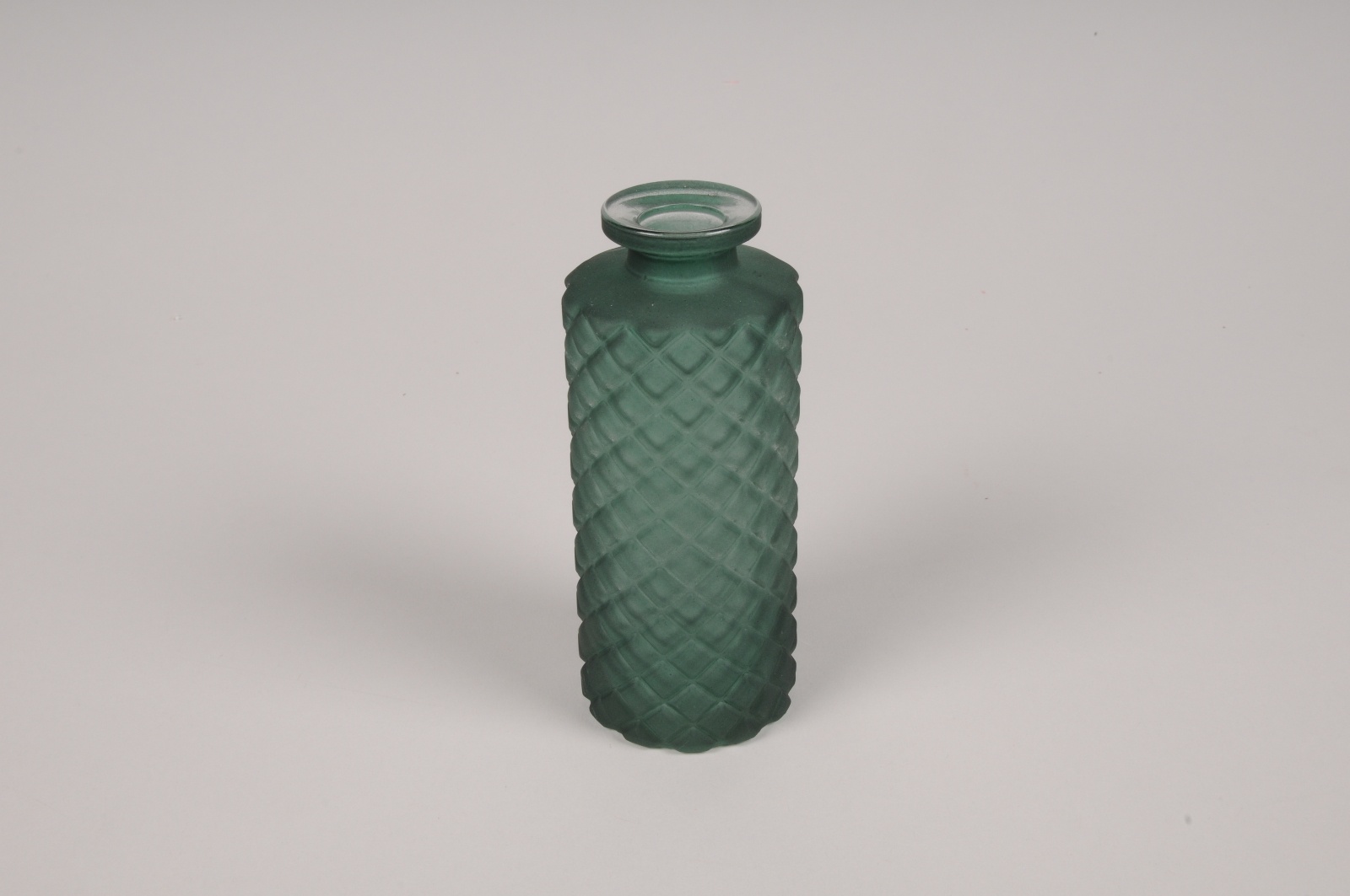 Green glass bottle vase with grid pattern diameter 5cm height 13cmOpening diameter 2cm