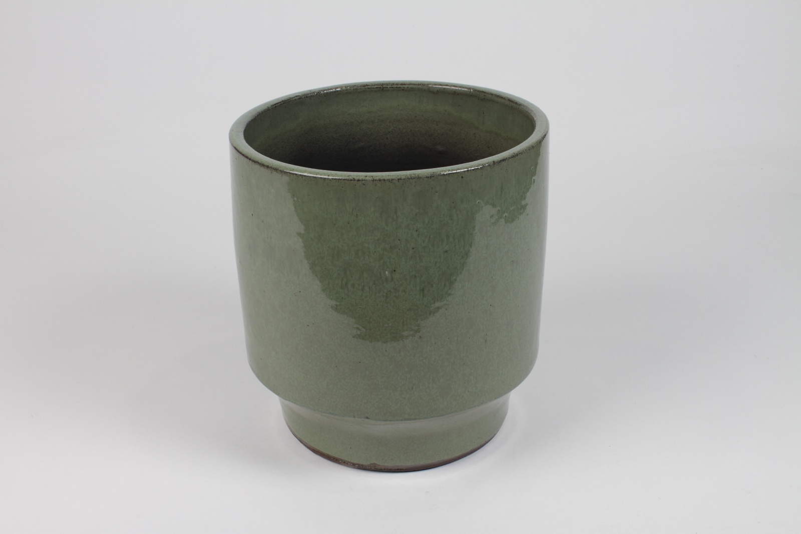 Shiny grey-green glazed ceramic planter diameter 21cm height 22cmInside diameter 18.5cmBase diameter 16cm