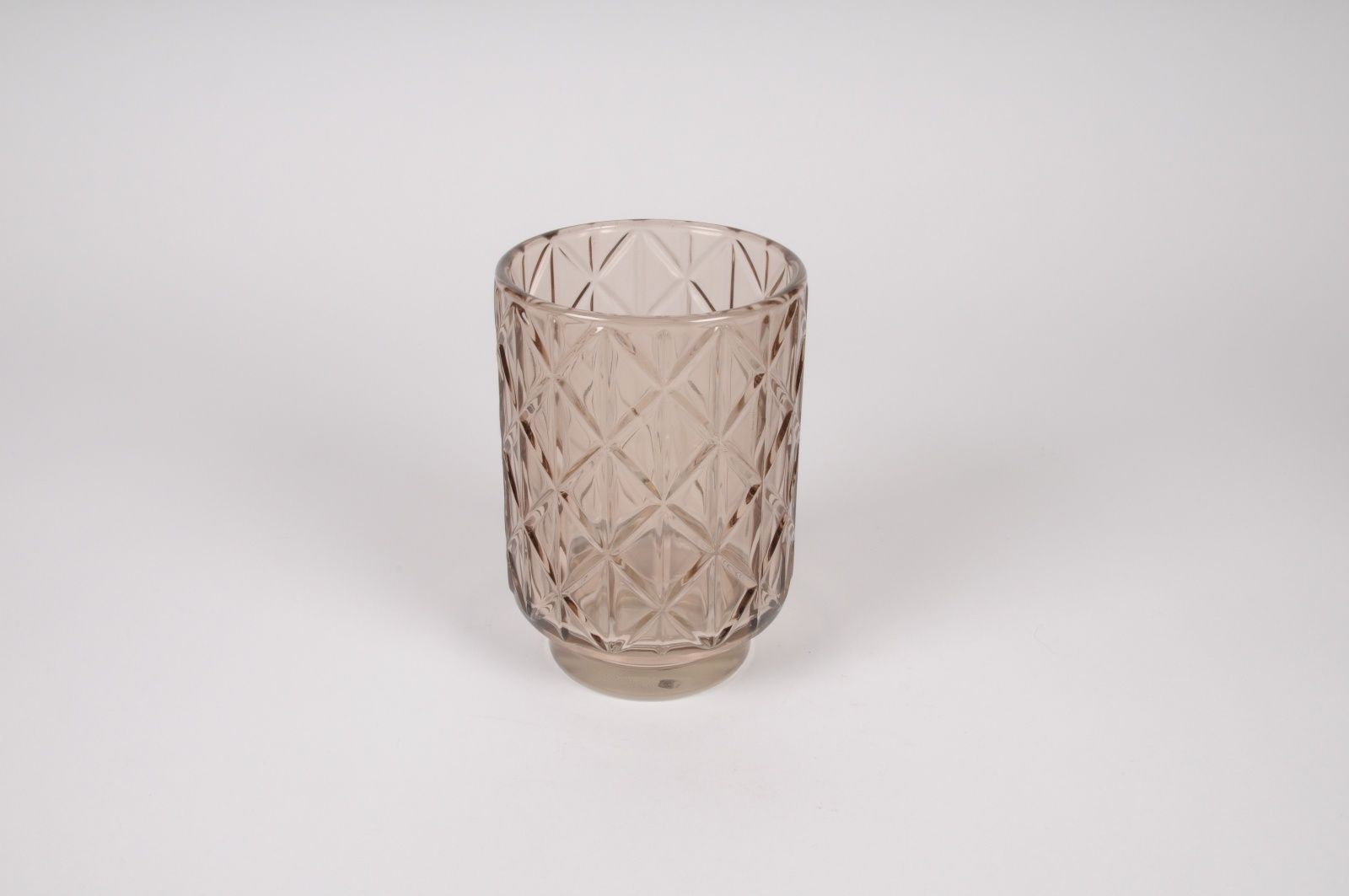 Grey glass candle jar on stand with geometric pattern diameter 10cm height 15cmCandle jar height 12cmBase diameter 7cm height 3cm