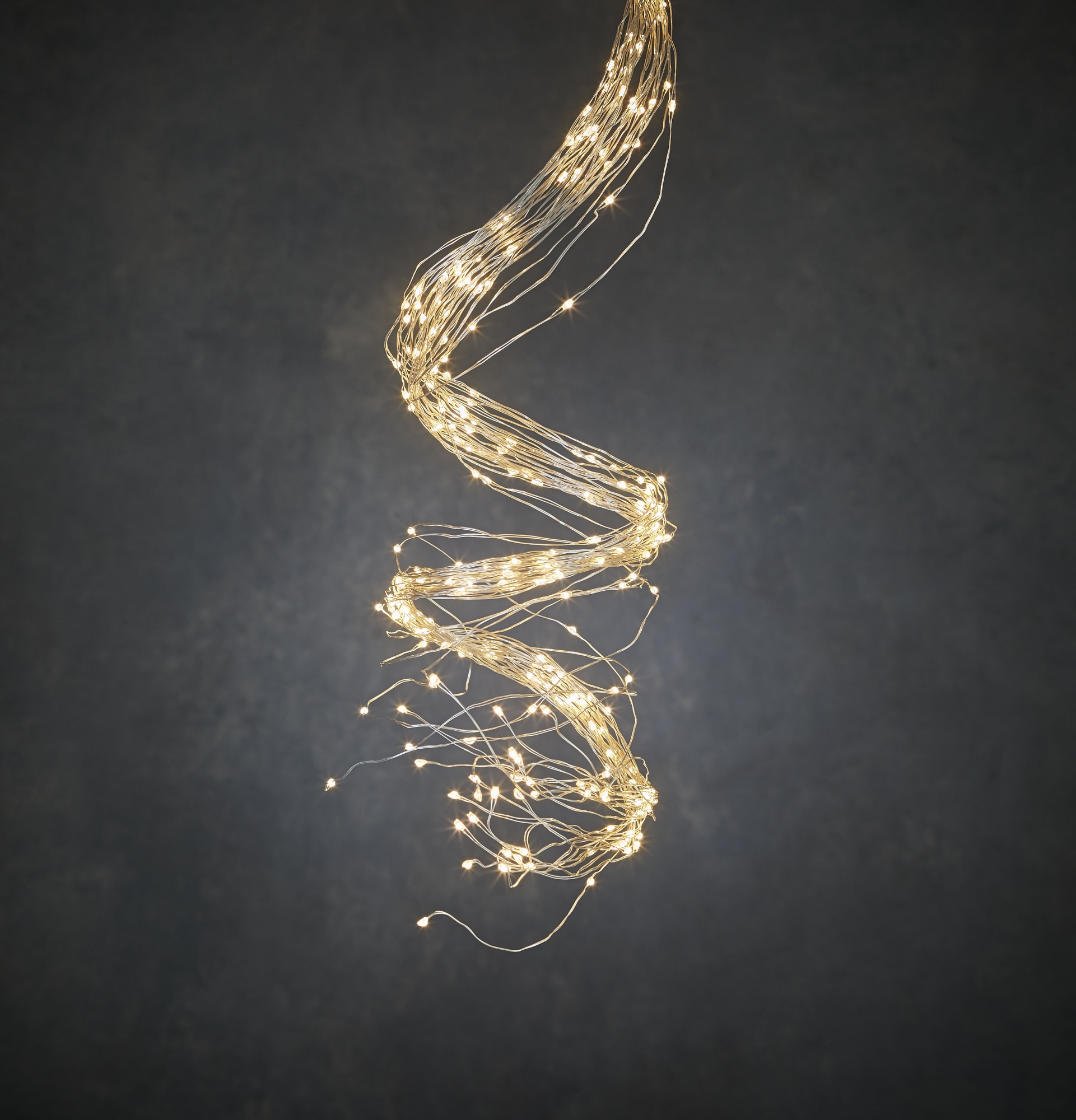 Guirlande faisceau lumineux électrique 30 fils argent 900 led blanc chaud longueur 3m