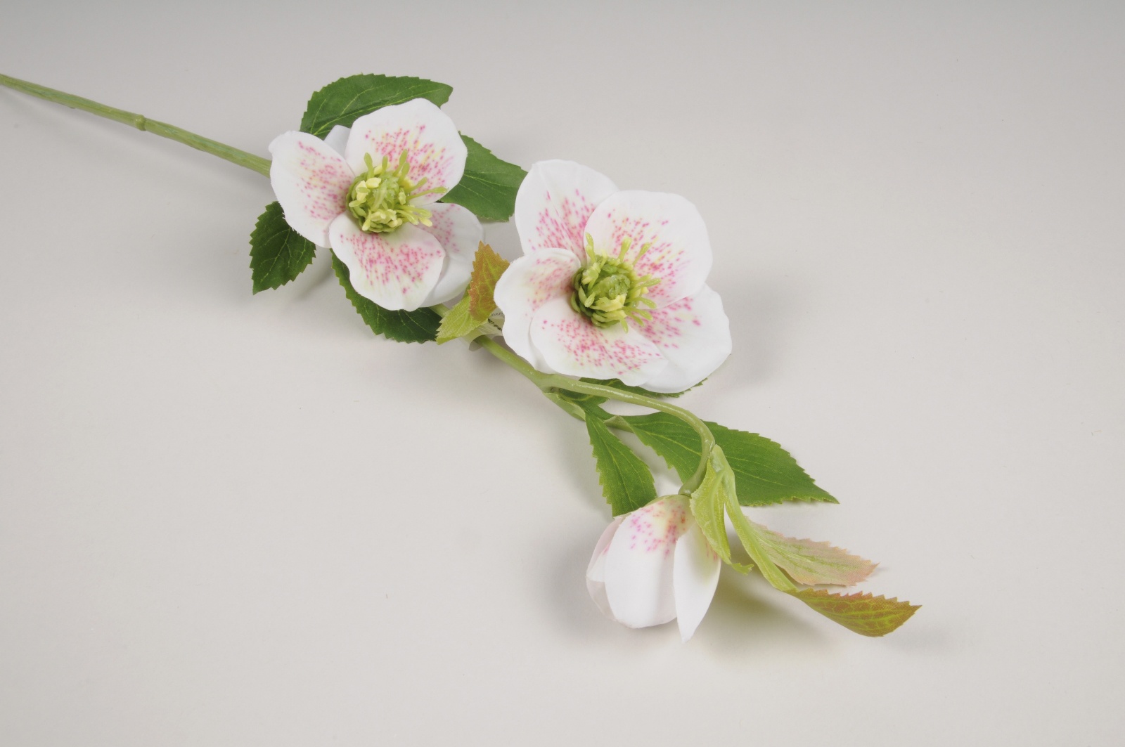 Branche d'hellébore ou rose de noël artificielle blanche et rose hauteur 52cm