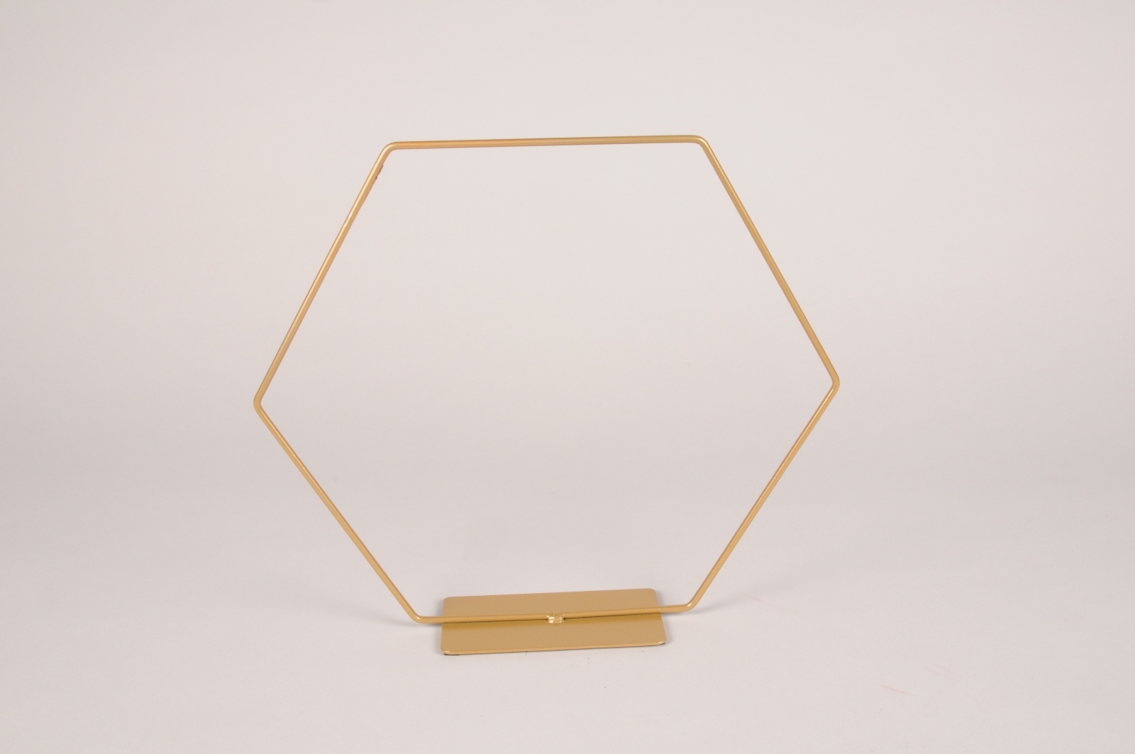 Hexagone ou cadre hexagonal en métal sur pied or utilisé pour la création de couronnes de fleurs séchées