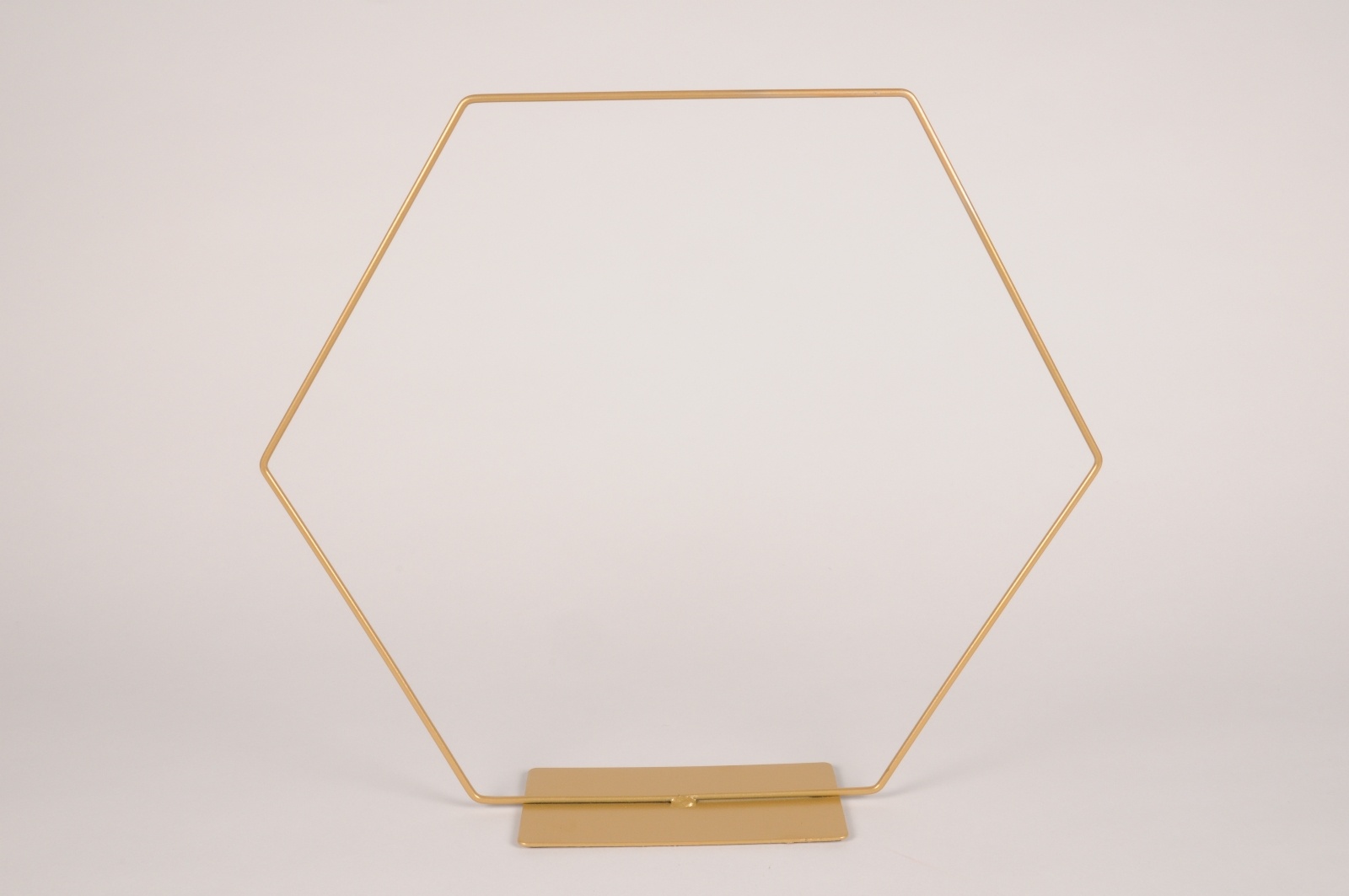 Hexagone ou cadre hexagonal en métal sur pied or utilisé pour la création de couronnes de fleurs séchées
