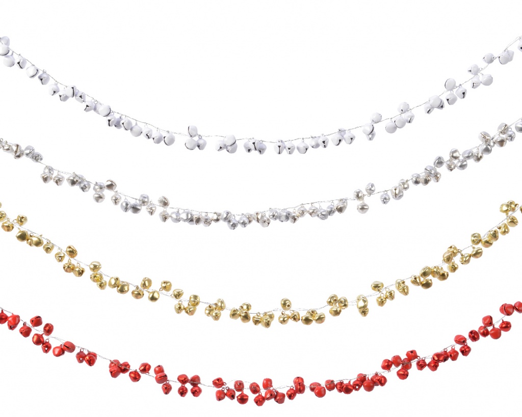 Iron sleigh bells garland assorted longueur 120cm Garland in white or silver or gold or red color