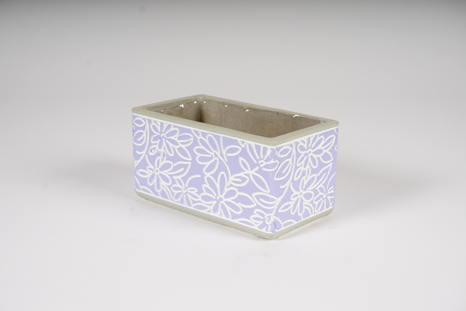 Jardinière en céramique lavande avec motif floral incrusté blanc longueur 16cm largeur 9cm hauteur 8cm