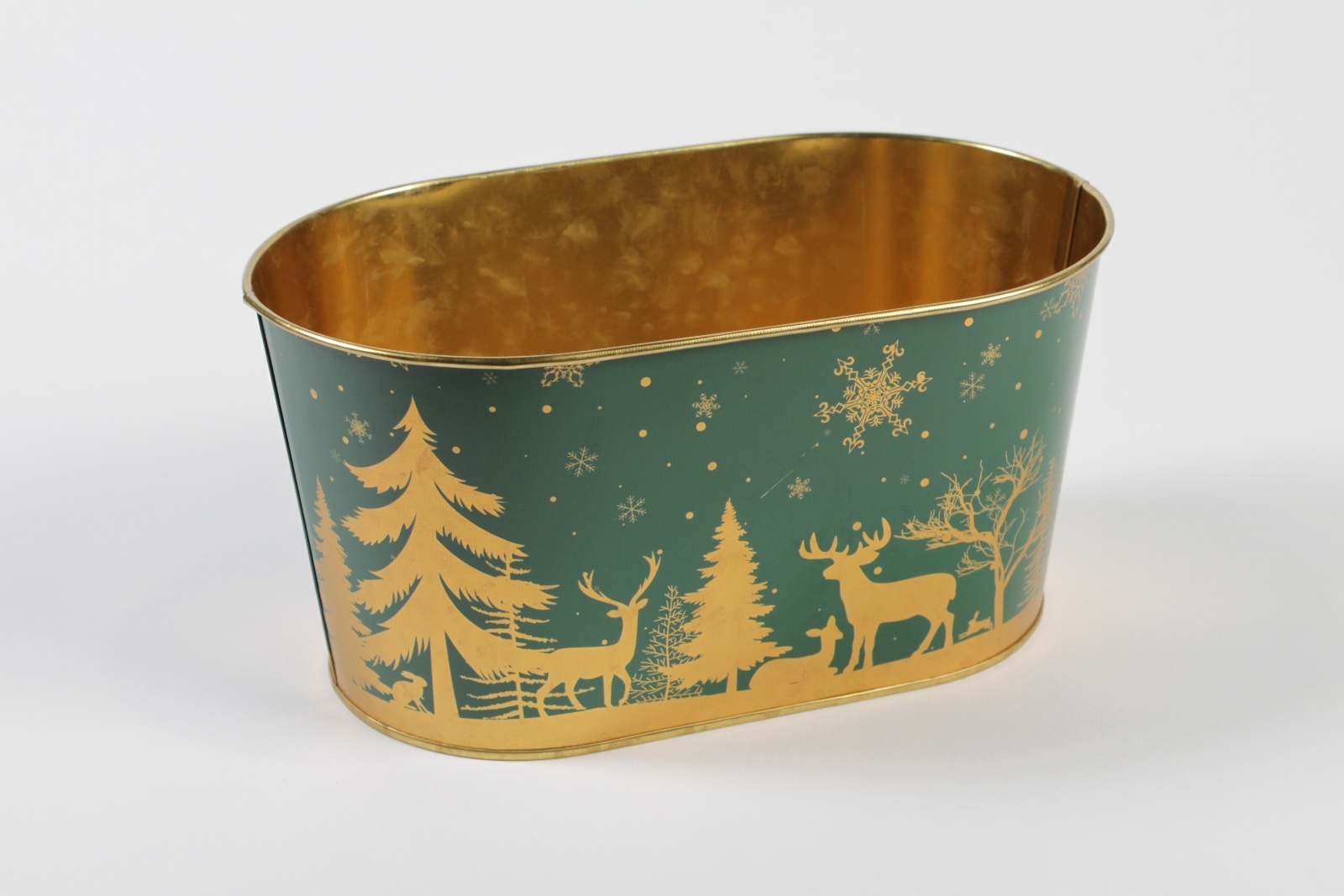Jardinière en zinc vert or Noël 22.5x13.7cm H11.3cm