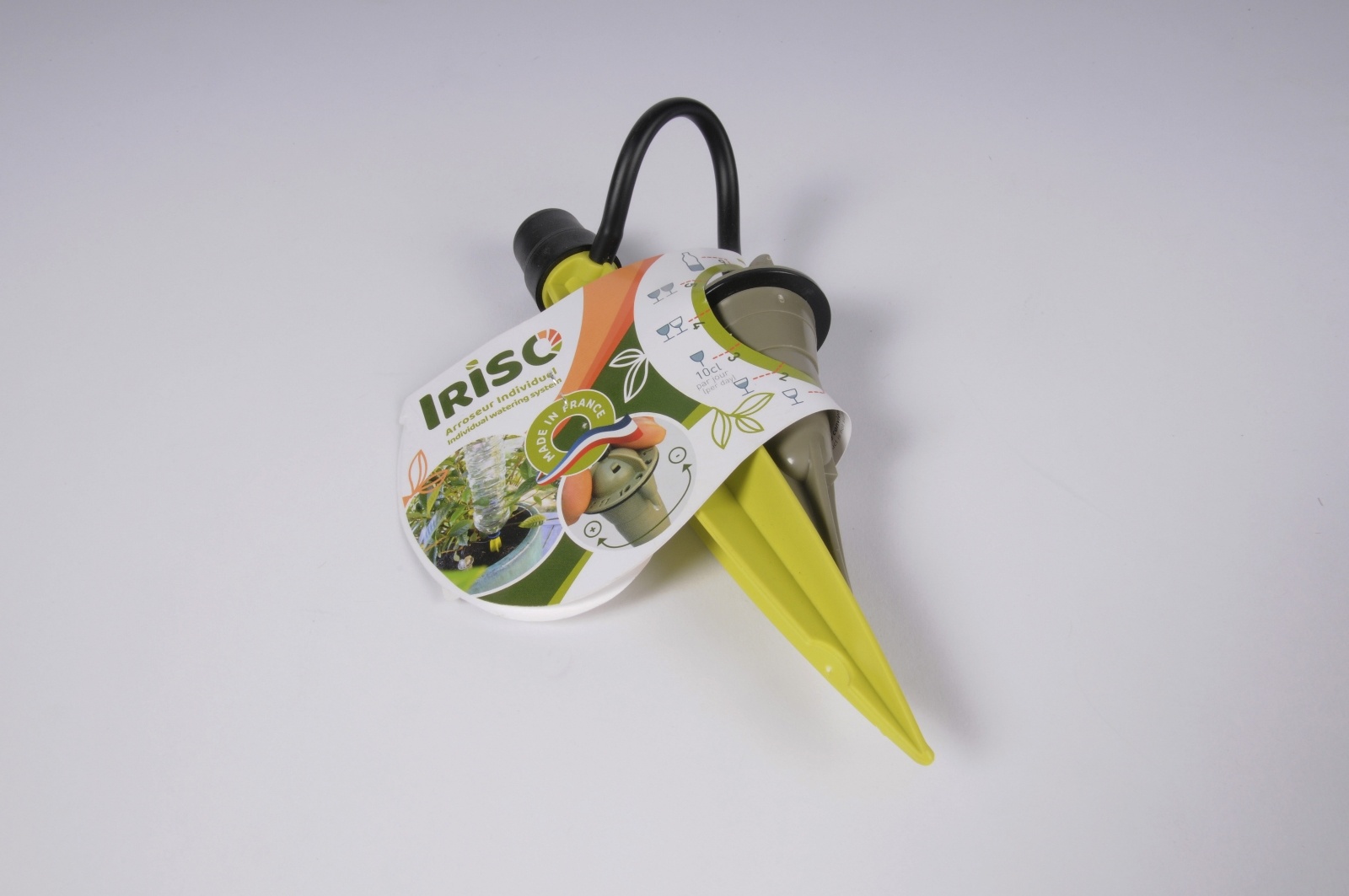 Light green and black plastic sprinkler for regular irrigation with a 0.5 litre to 2 litres plastic bottle