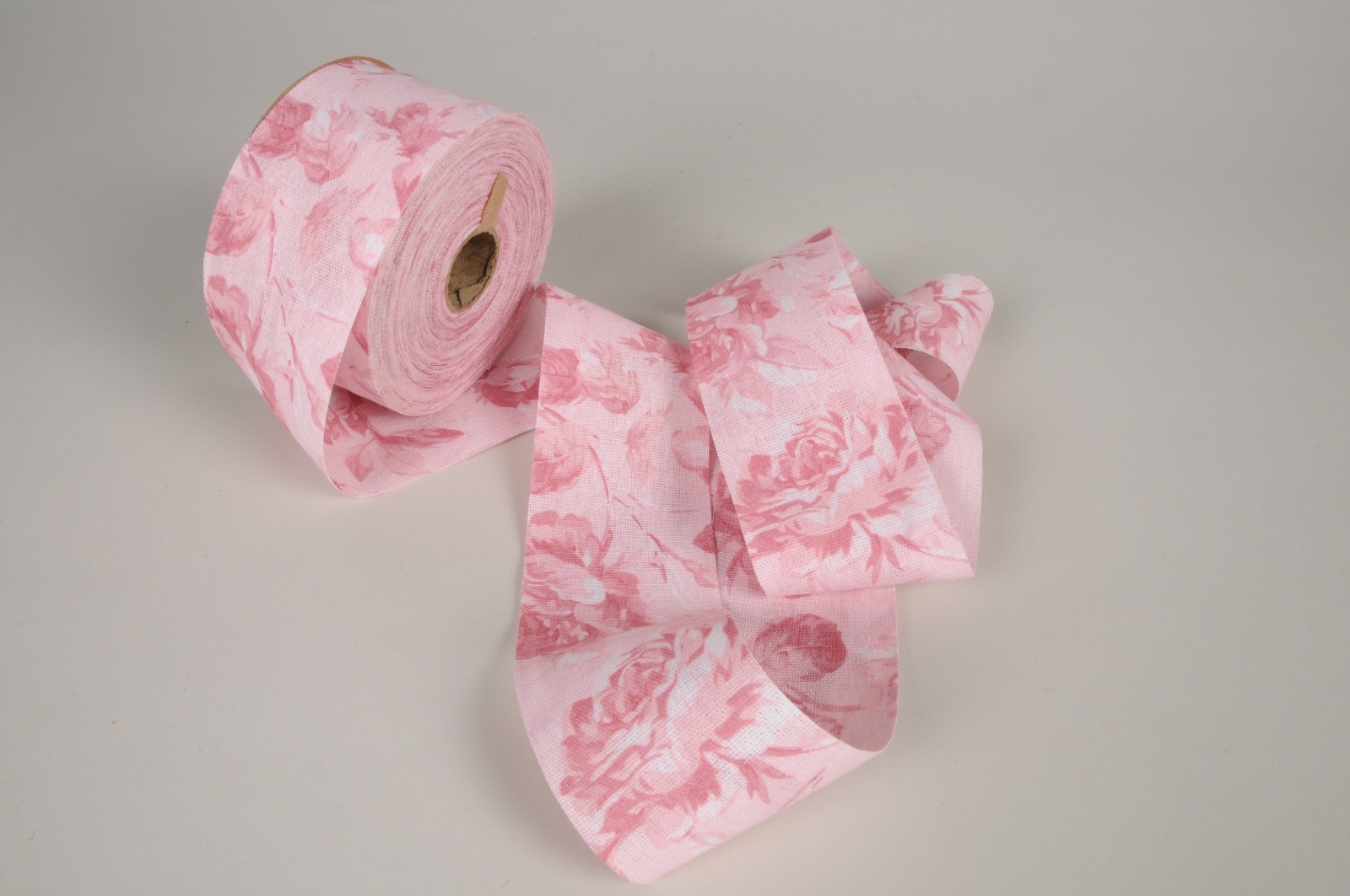 Light pink fabric ribbon with flower pattern width 63mm length 20m