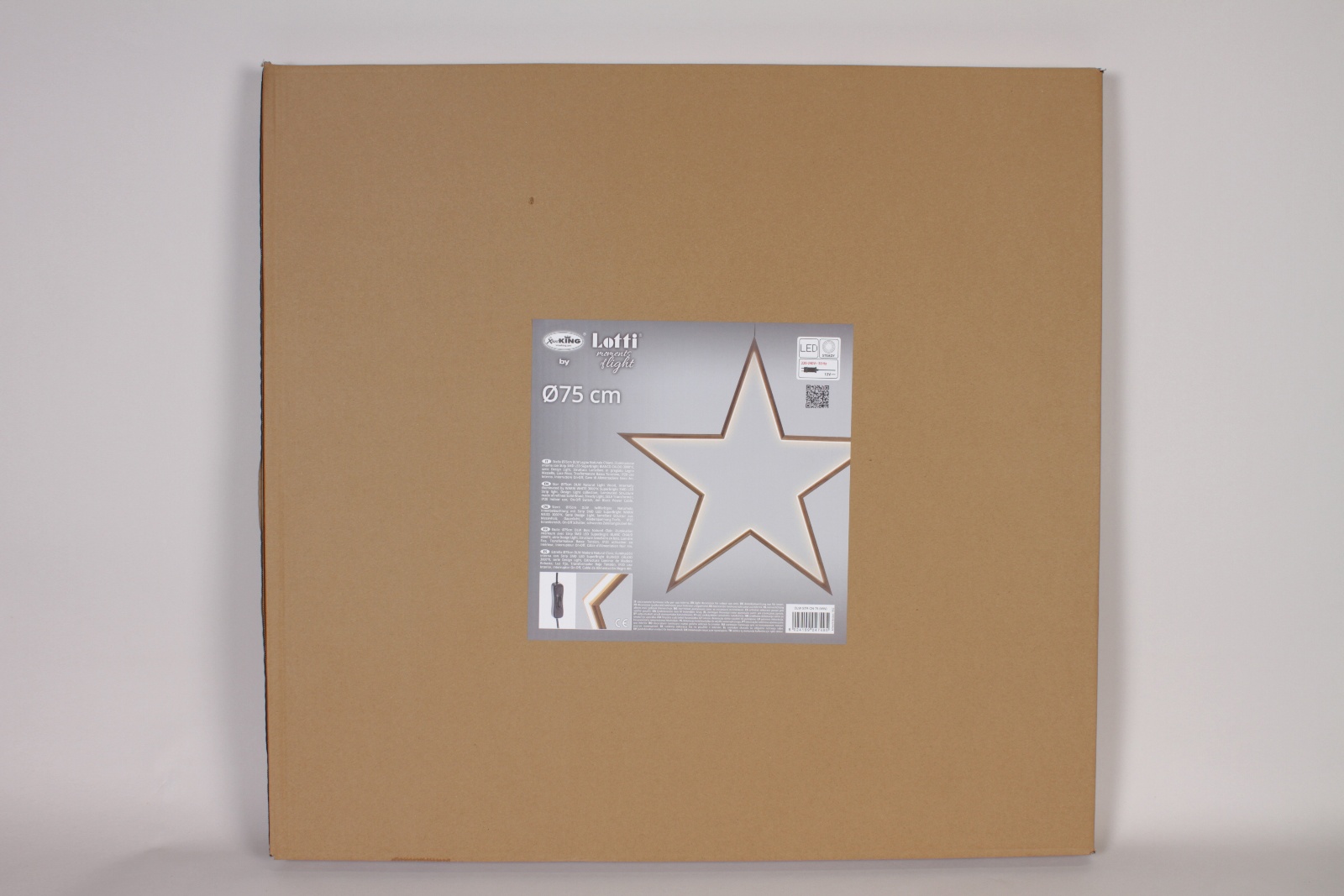 Lighting wooden star with warm white LED diameter 75cm indoor use