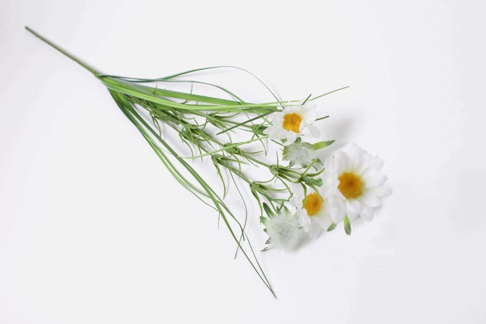 Piquet de marguerite artificielle blanche composé de 3 fleurs et 3 inflorescences hauteur 88cm