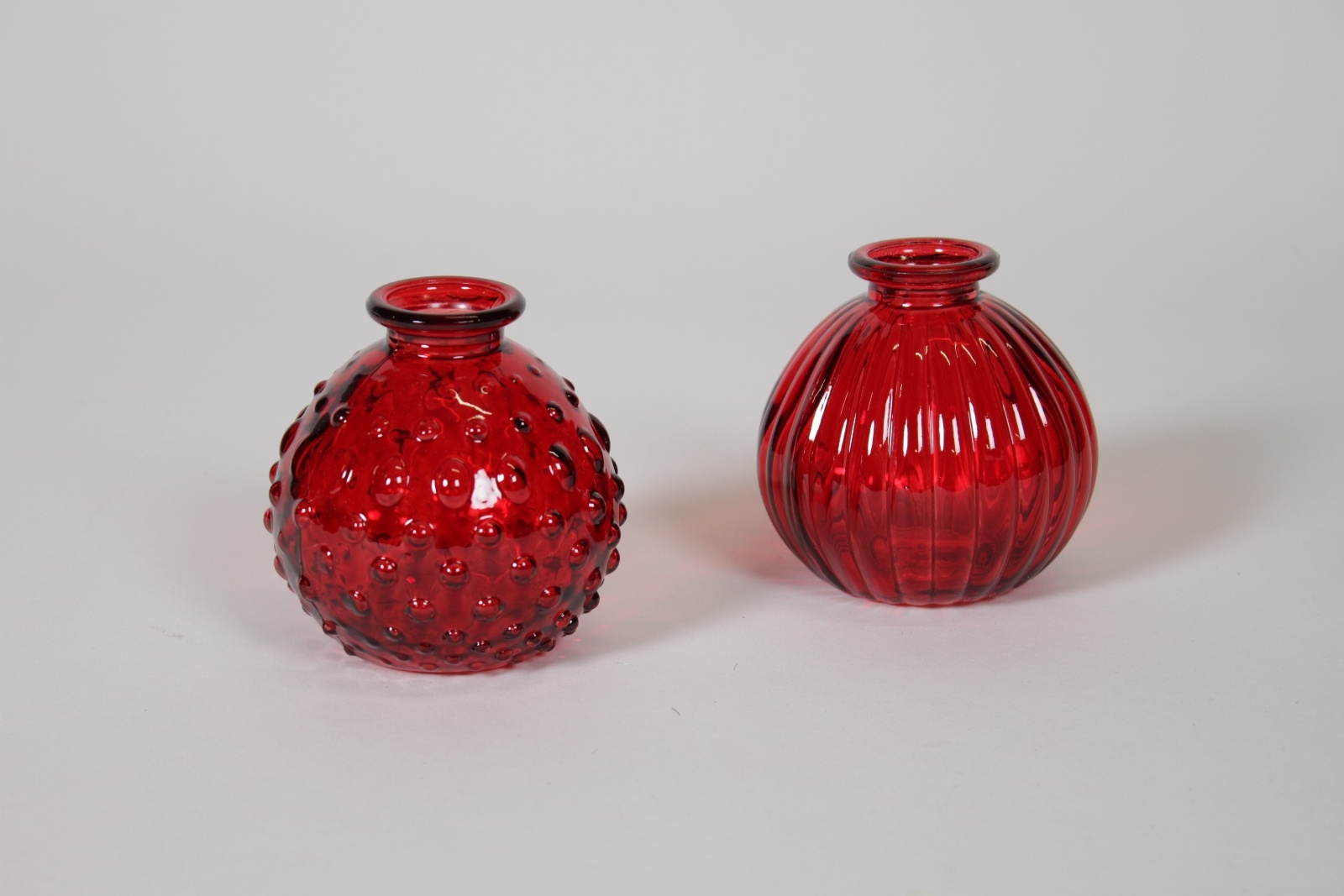 Matching red glass vase diameter 8.5cm height 8.5cm