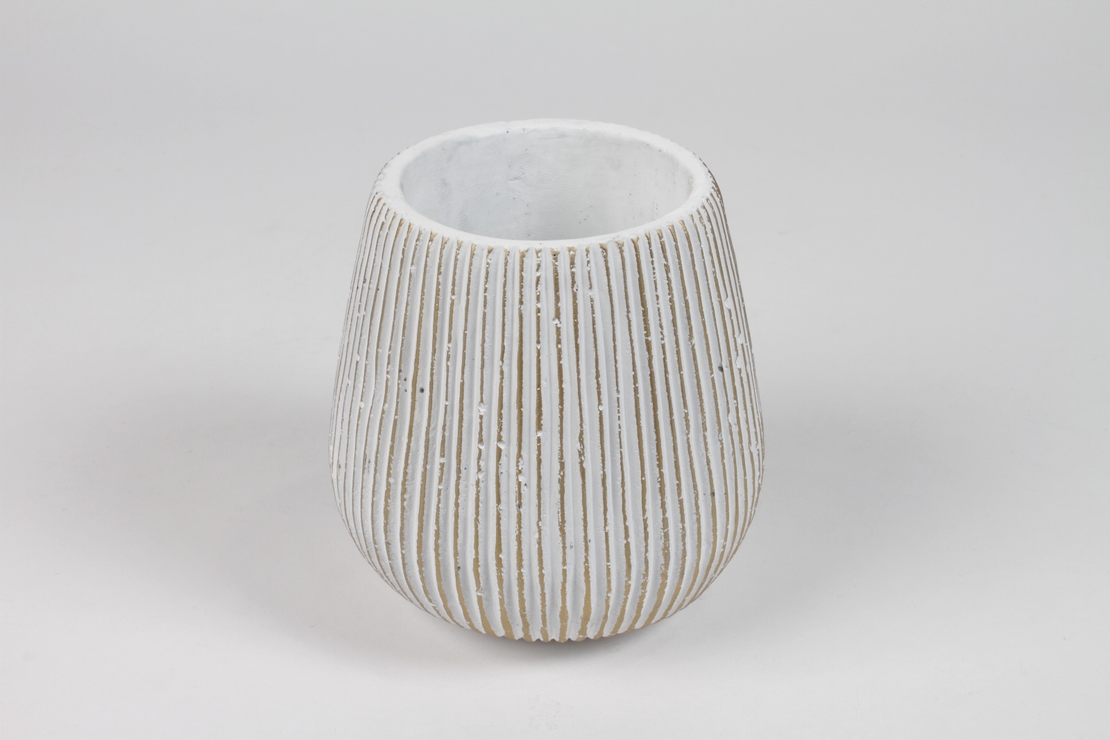Matte white and gold striated ceramic planter diameter 16cm height 17cm Inside diameter 10cm
