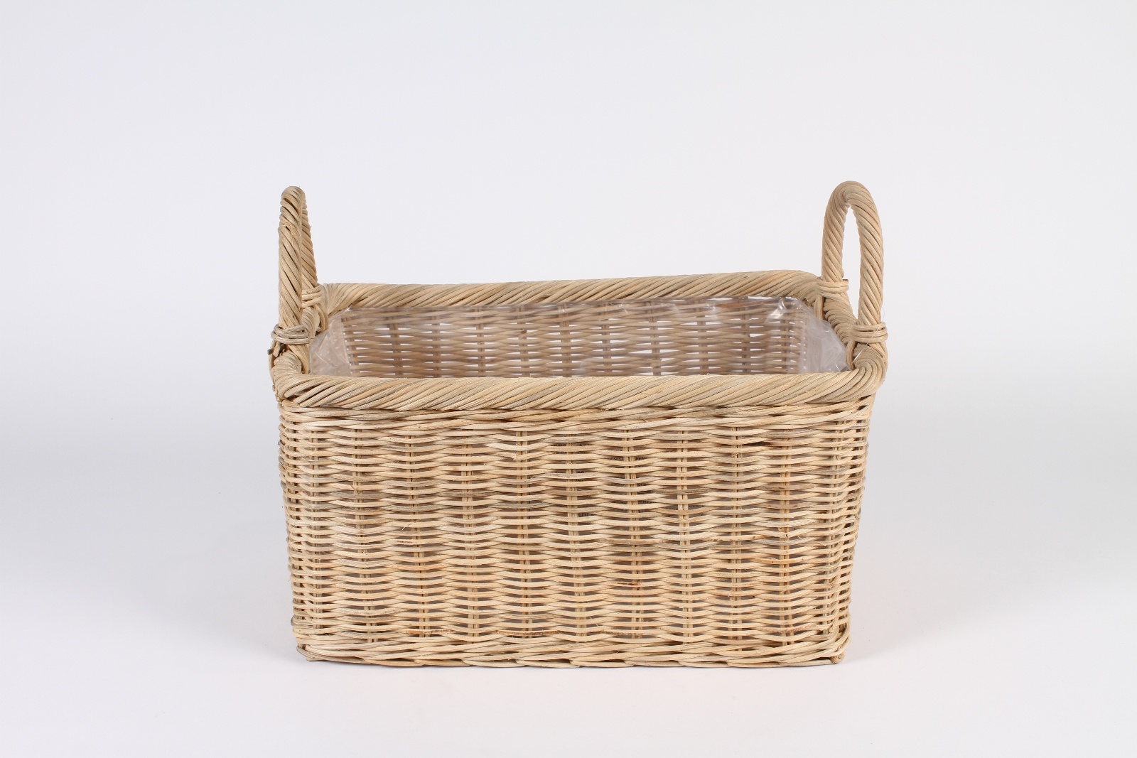 Natural rattan planter with handles length 38cm width 24.5cm height 20cmPlastic film inside