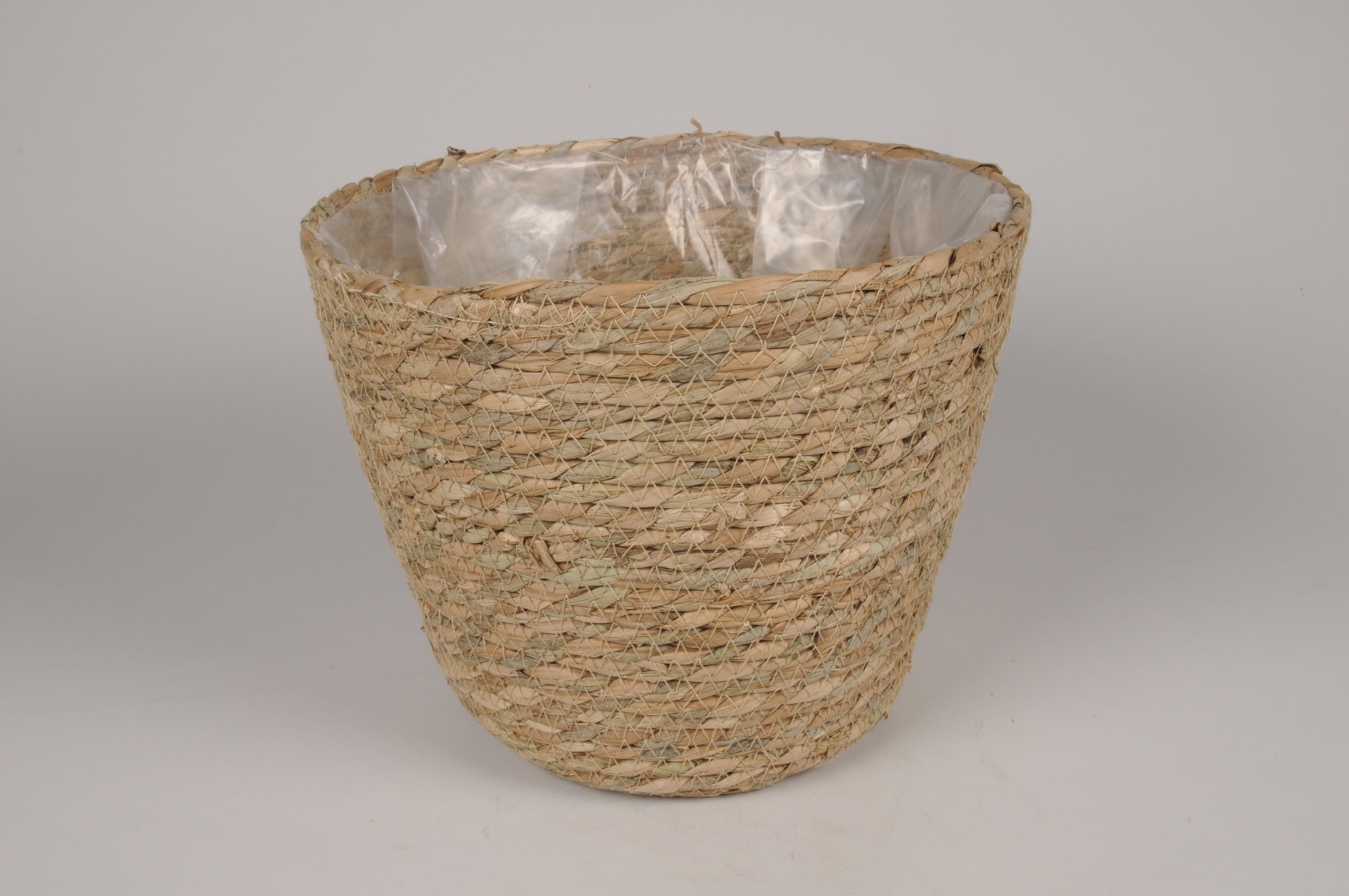 Natural seagrass planter diameter 27cm height 21.5cmInside diameter 26cmBase diameter 18cmPlastic film inside