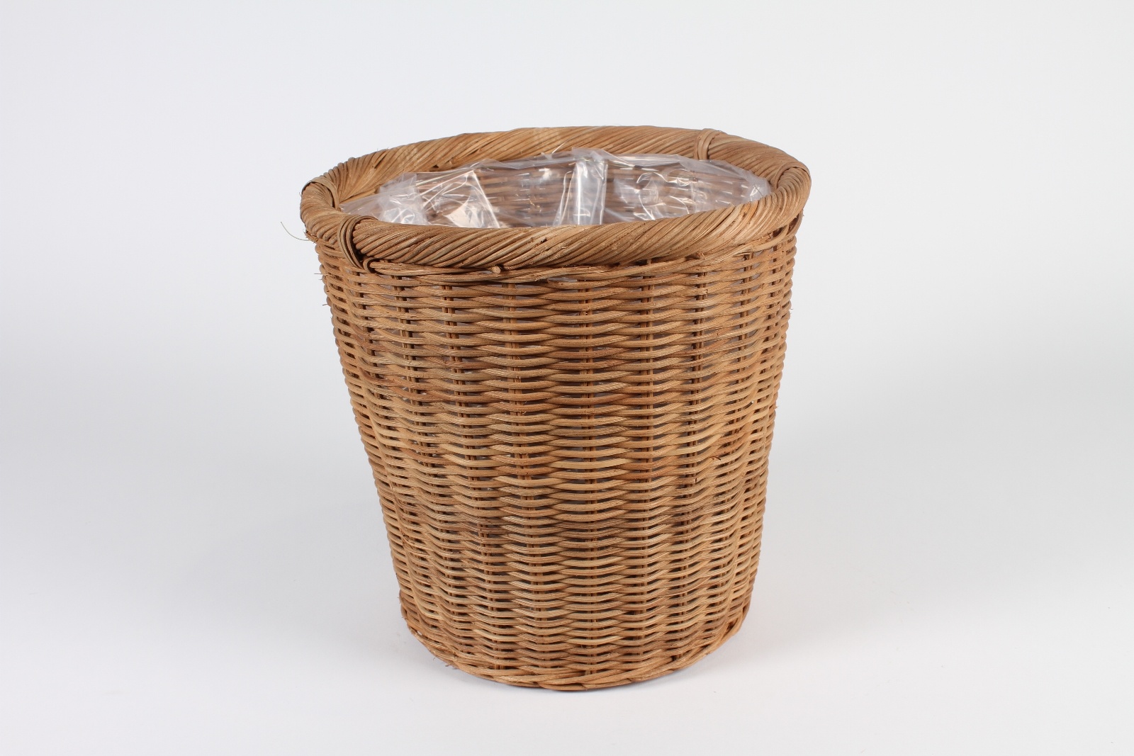 Natural wicker planter basket diameter 29cm height 28cmBase diameter 22cmPlastic film inside