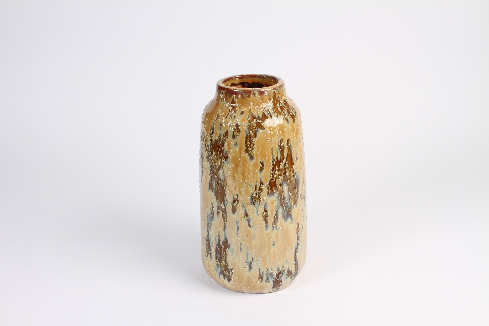 Old beige and brown glazed ceramic vase diameter 15cm height 29cmOpening diameter 7cm