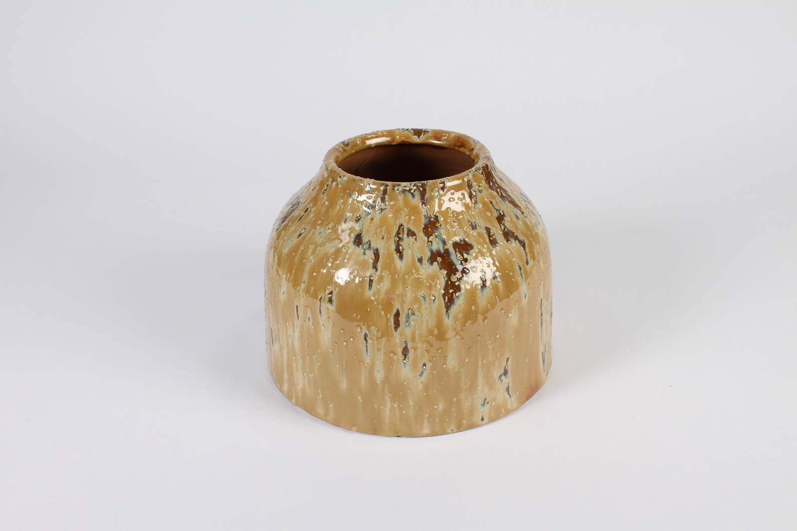 Old beige and brown glazed ceramic vase diameter 24cm height 19.5cmOpening diameter 10.5cm