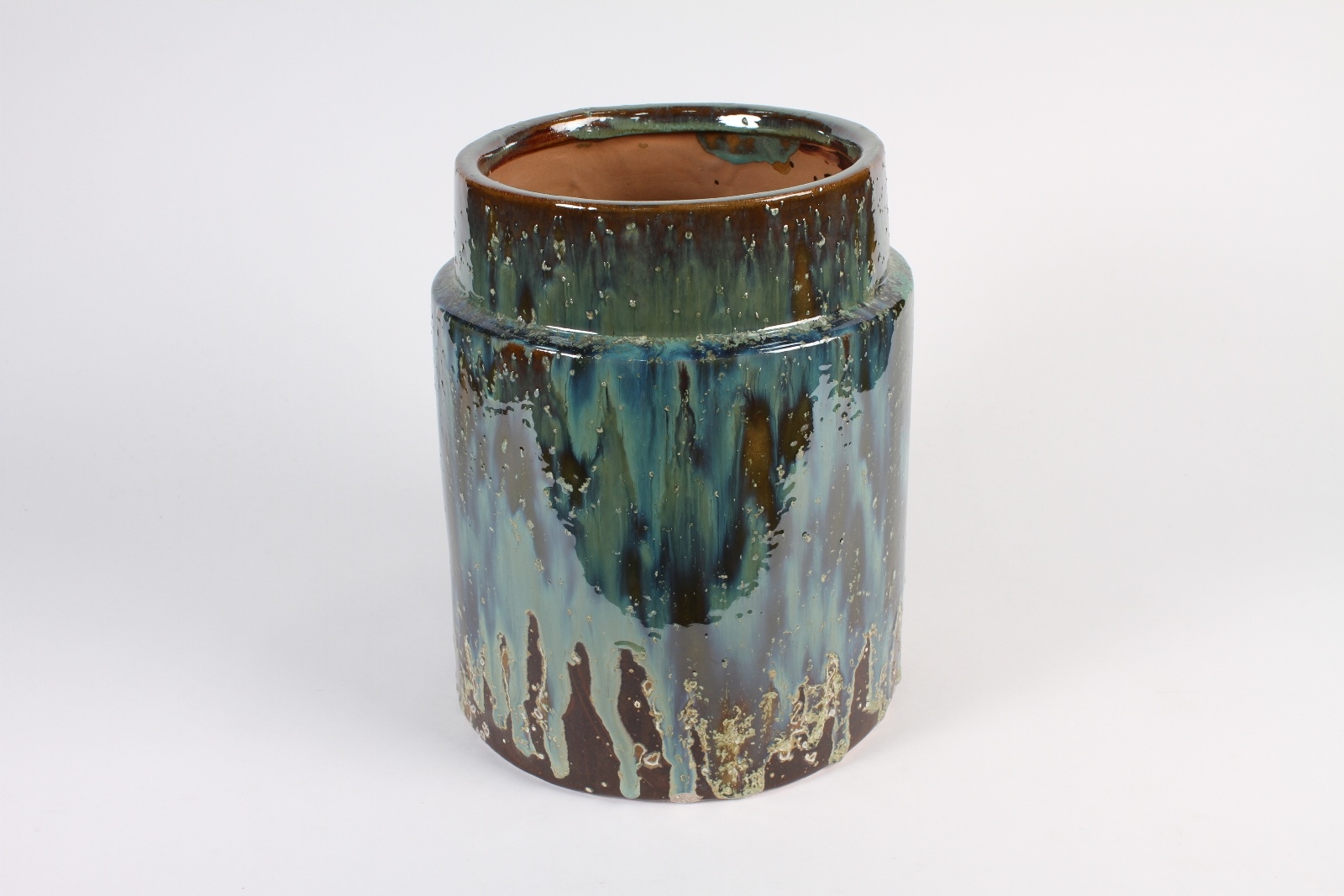 Old green and brown glazed ceramic planter diameter 26cm height 33cmOpening diameter 19.5cm