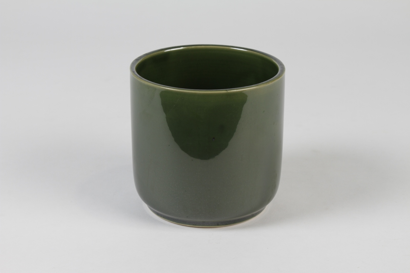 Olive green glazed ceramic planter diameter 13cm height 12.5cmInside diameter 12cm