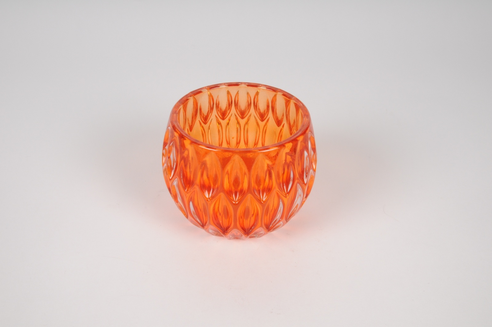 Orange glass ball candle jar with geometric pattern diameter 10cm height 9cmOpening diameter 8cmInside diameter 5cm