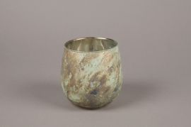 Matte blue oxidized bronze effect glass candle jar diameter 13cm height 13cm