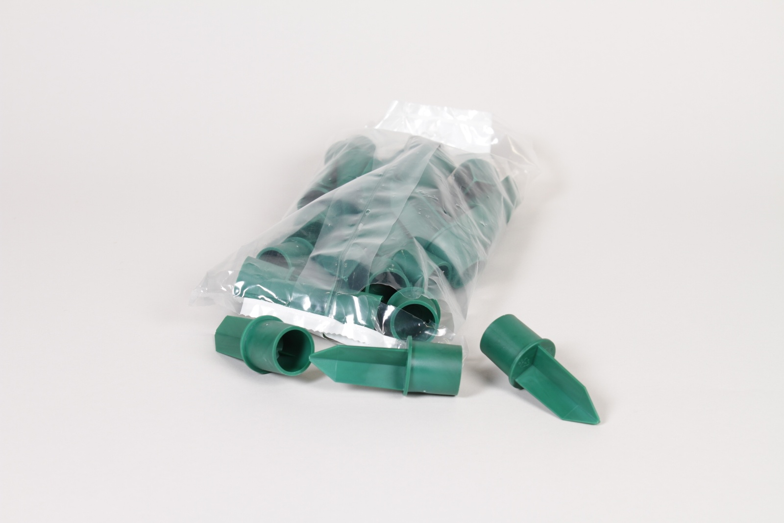 Pack of 24 green plastic stake candle holders diameter 2.2cm height 8cm