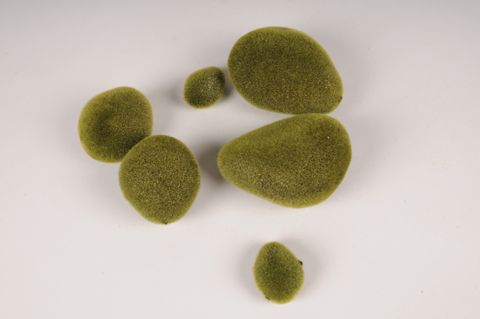 Pack of 6 artificial moss green pebbles diameter 5cm to 12cm