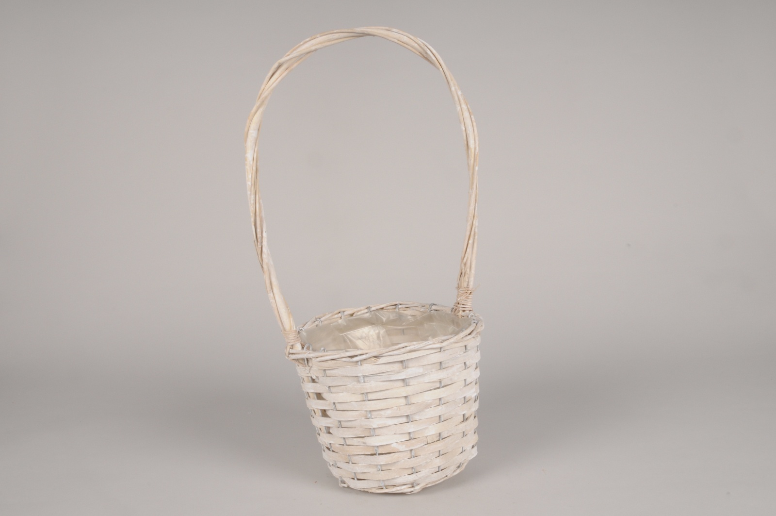 Accueil > Contenants > Vannerie > Paniers > Panier en osier blanc avec anse D18.5cm H15cm