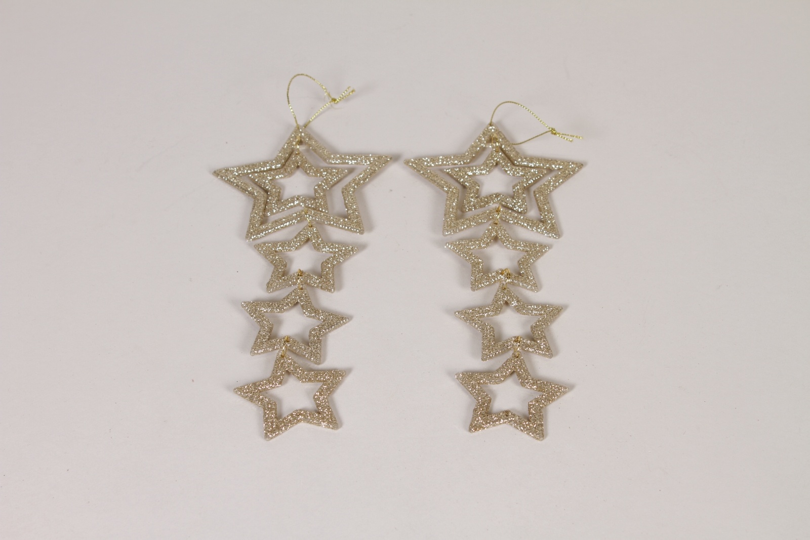 Paquet de 2 suspensions d'étoiles pailleté or à suspendre largeur 10cm hauteur 24cm