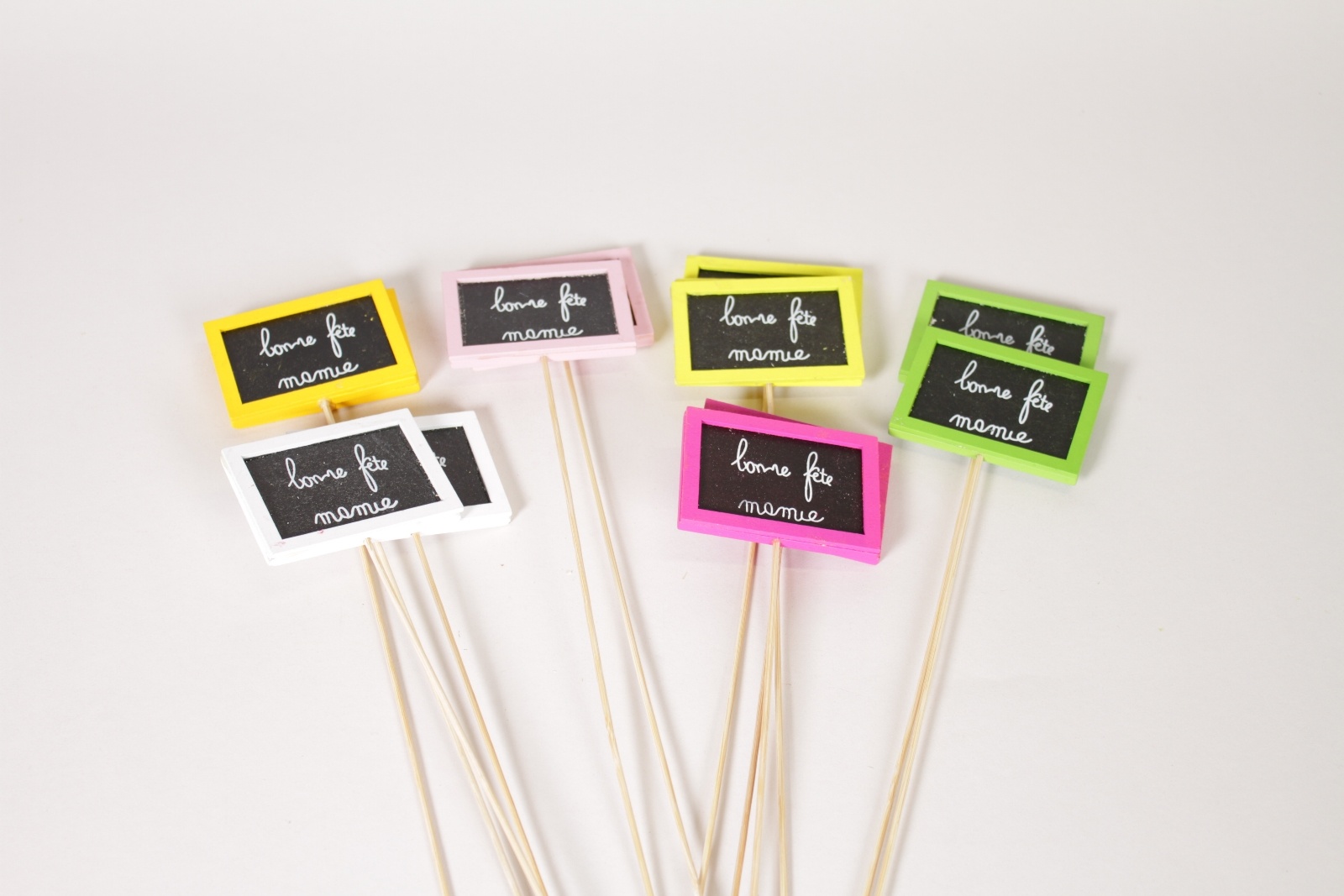 Paquet de 12 pics bonne fête mamie en bois assorties hauteur 30cm