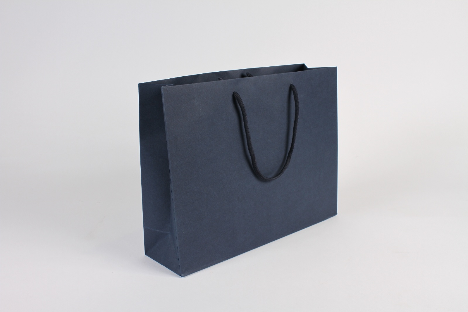 Paquet de 12 sacs kraft bleu foncé avec poignées torsadées largeur 35cm hauteur 27cm