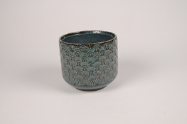 Peacock blue ceramic planter with brown patterns diameter 16cm height 14.5cmInside diameter 15cmBase diameter 11cm