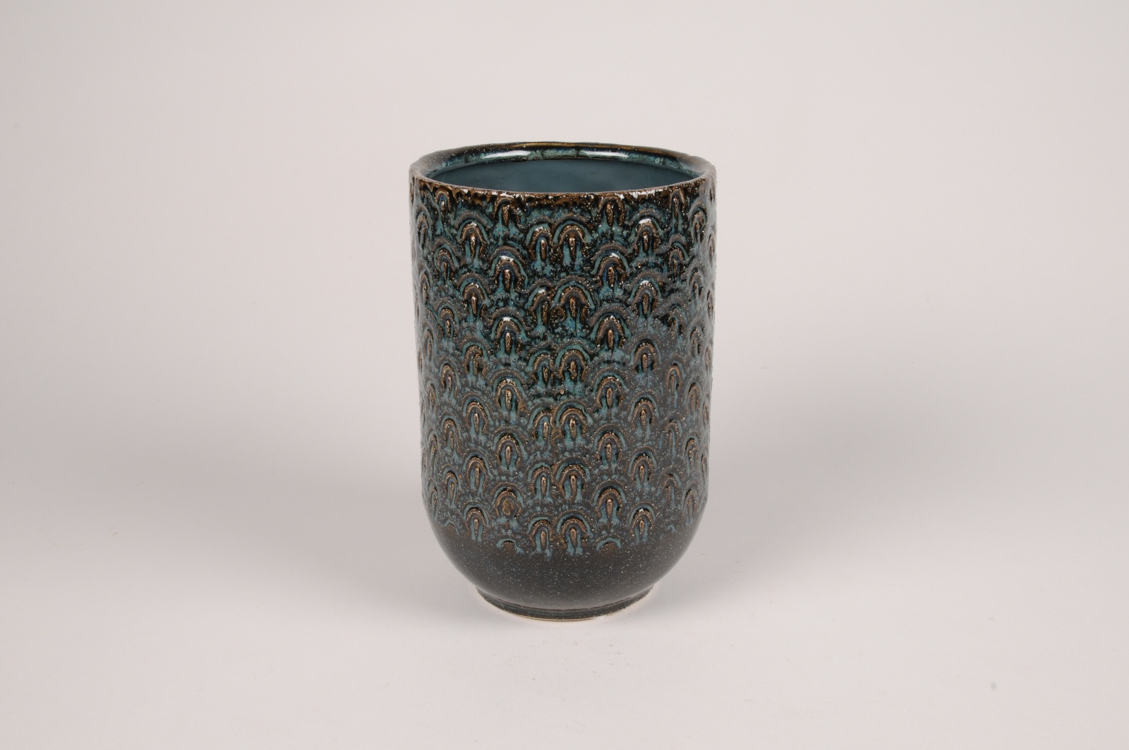 Peacock blue ceramic vase with brown patterns diameter 13.5cm height 20cmBase diameter 9cm