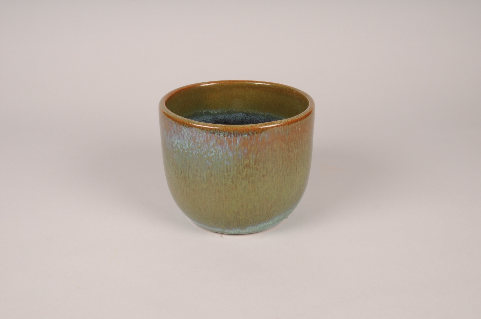 Peacock blue glazed ceramic vase in shades of petrol blue, duck green and bronze planter diameter 16cm height 13cm Opening diameter 14.5cmBase diameter 11cm