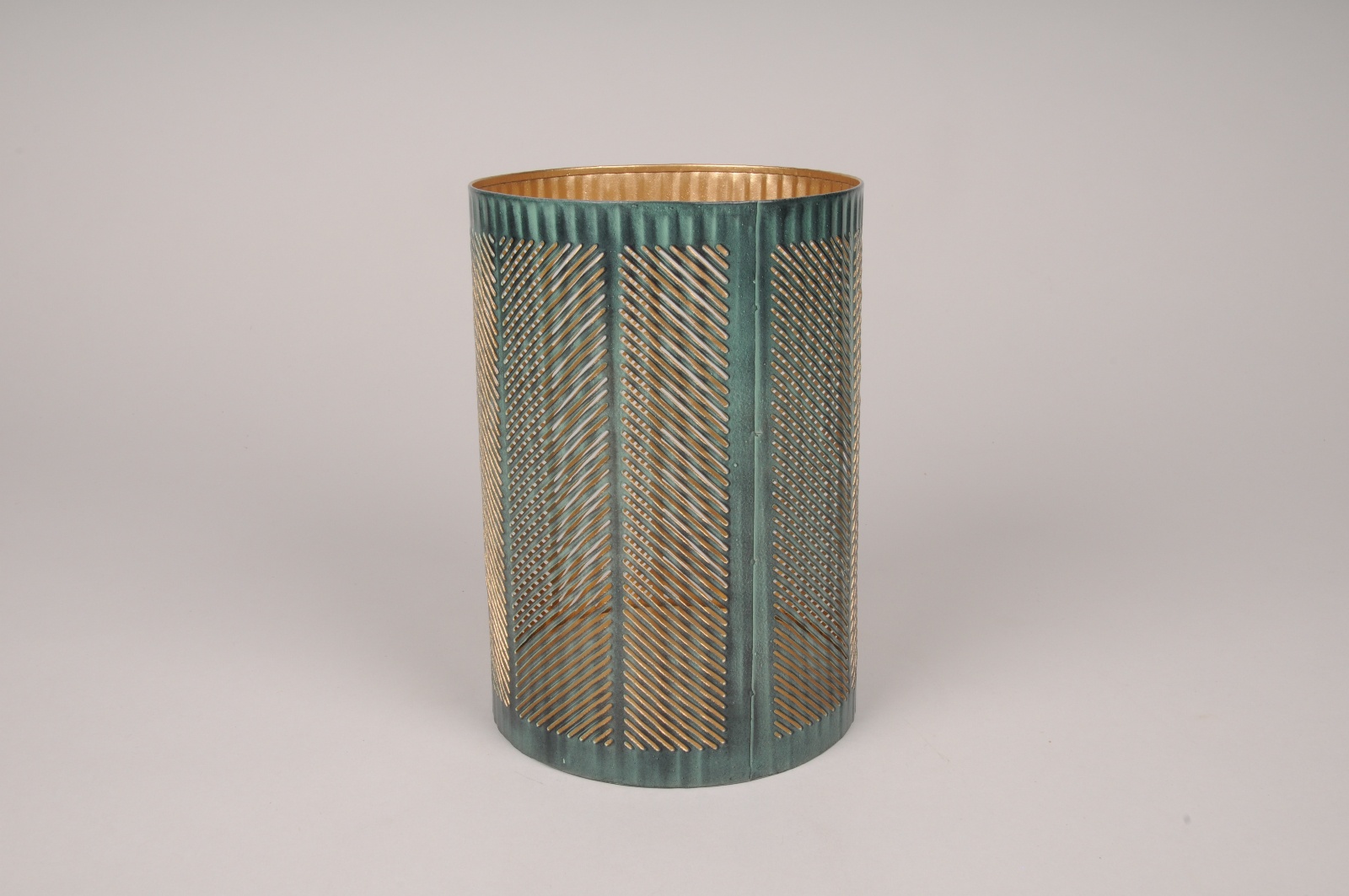 Accueil > Accessoires de décoration > Bougeoirs > Photophores > Photophore en métal vert doré D12cm H17.5cm