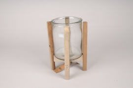Photophore en verre transparent avec support en bois 12.5x12.5cm H23cm