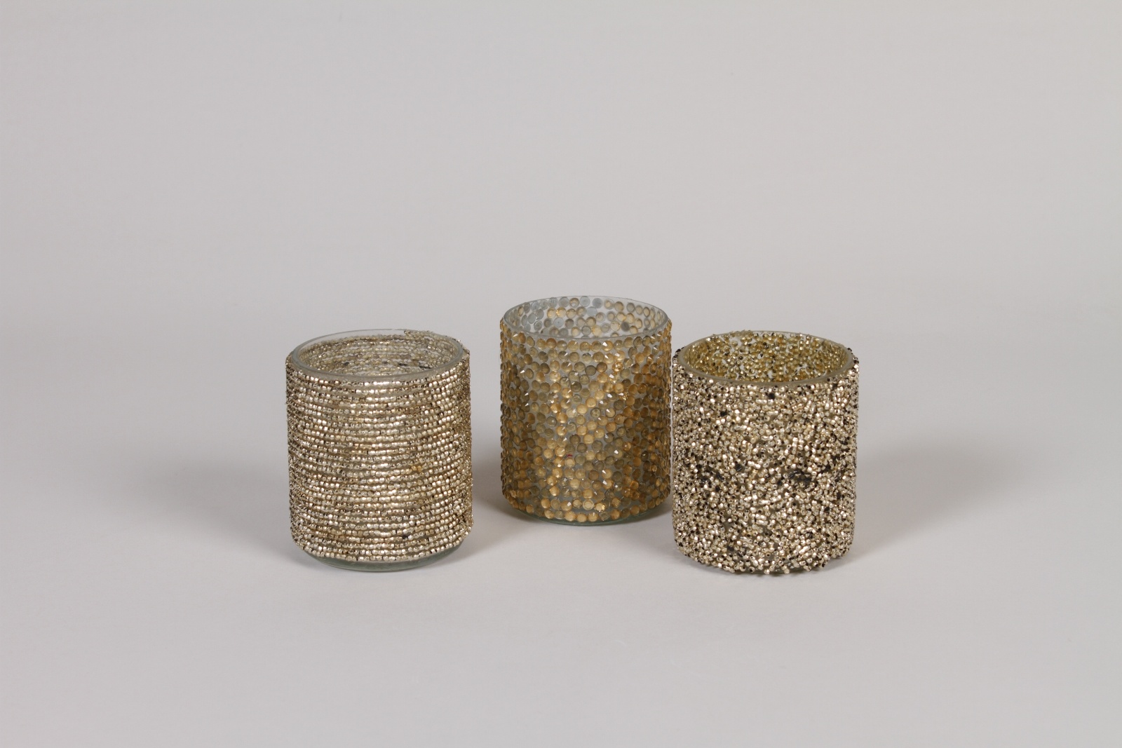 Accueil > Contenants > Verrerie > Pots et pipettes > Photophore en verre doré assorti D7cm H8cm