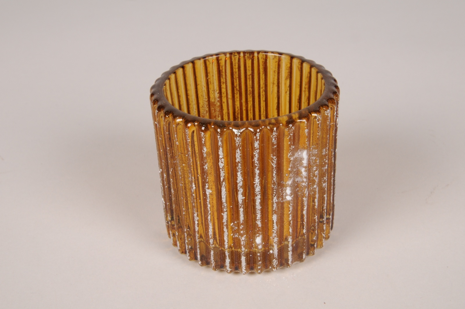 Photophore en verre strié givré ambre diamètre 7cm hauteur 6.5cm
