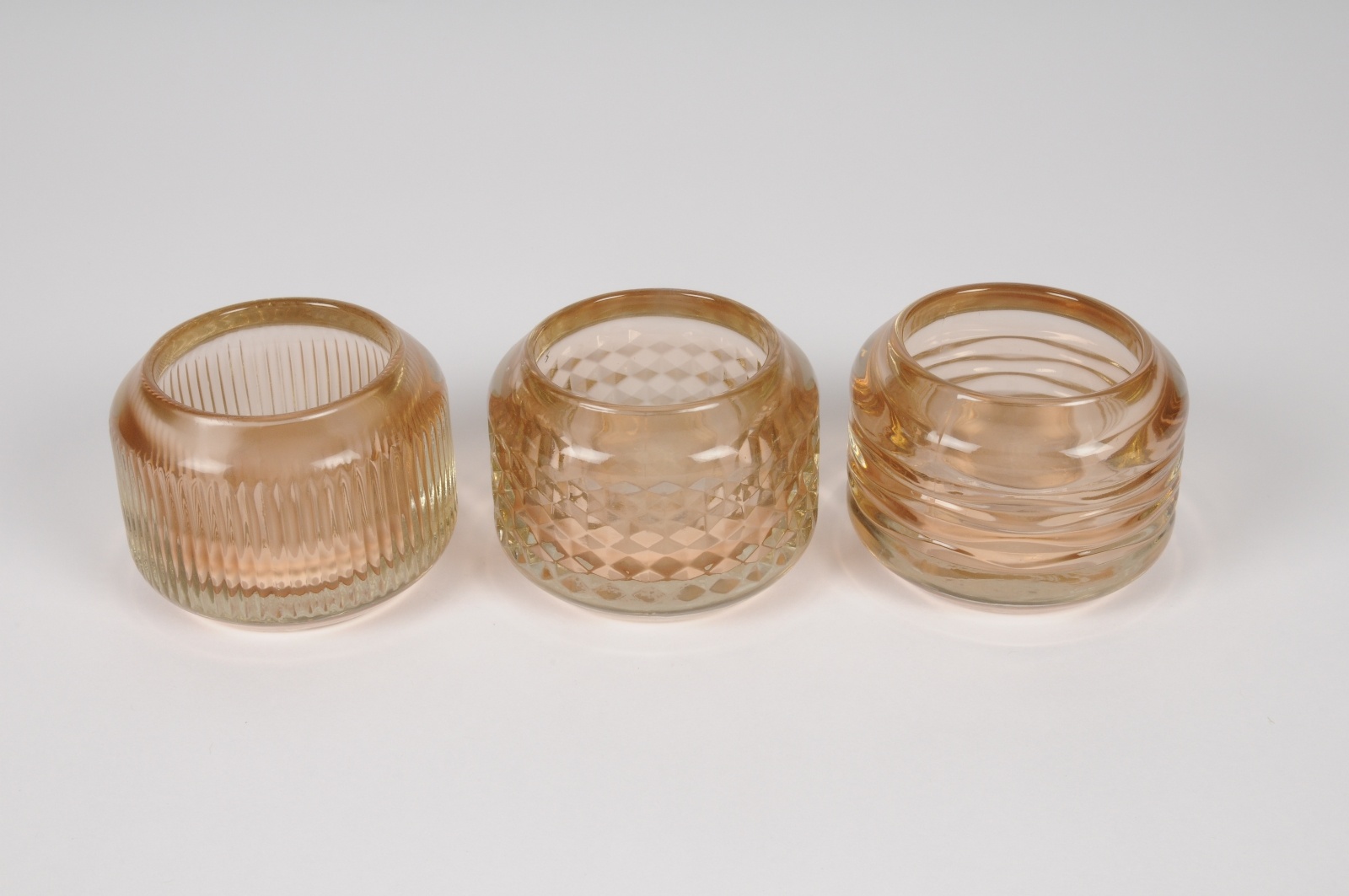 Photophore en verre épais rose pâle assorti motif strié, ondulé ou géométrique diamètre 8cm hauteur 6cm