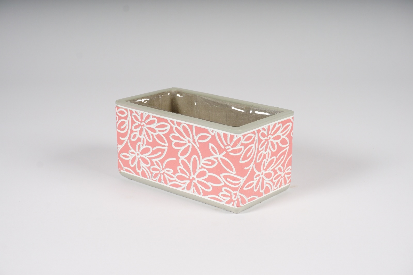 Home > Containers > Pots and ceramics > Window box > Pink ceramic planter with flower pattern 16x9cm H8cm