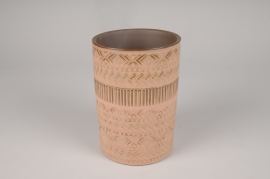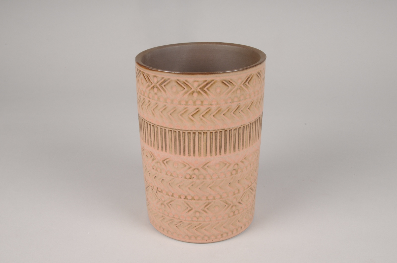 Pink cylindrical ceramic vase with patterns diameter 13cm height 18cm