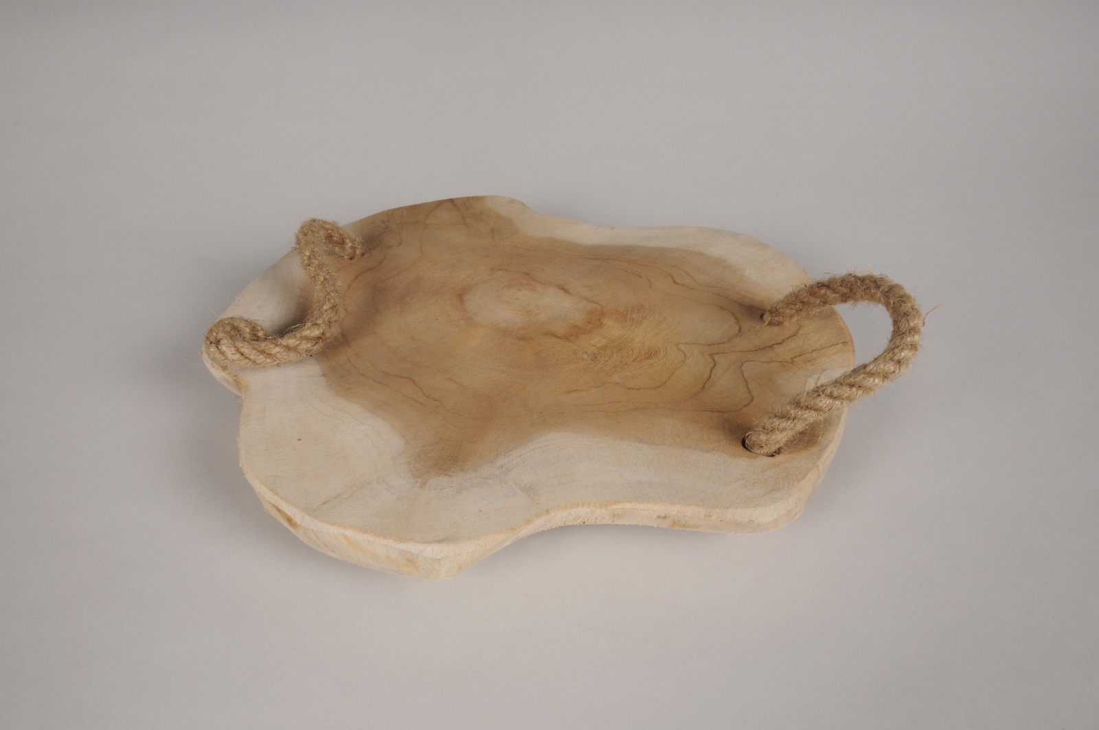 Plateau en teck naturel avec anses en corde diamètre 26cm