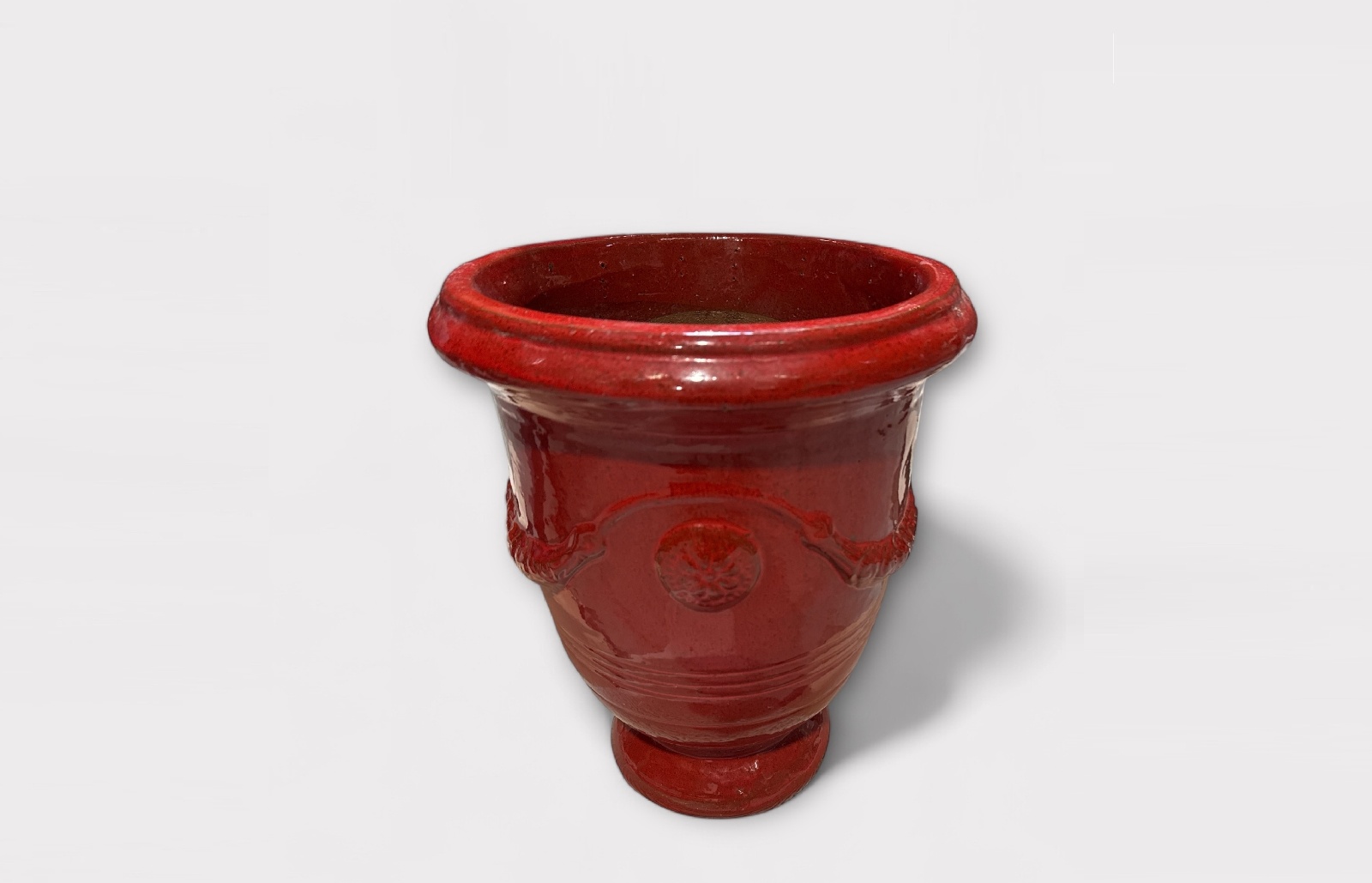 Réf. : UH-000012 Pot anduze en céramique rouge foncé brillant diamètre 42cm hauteur 36cm